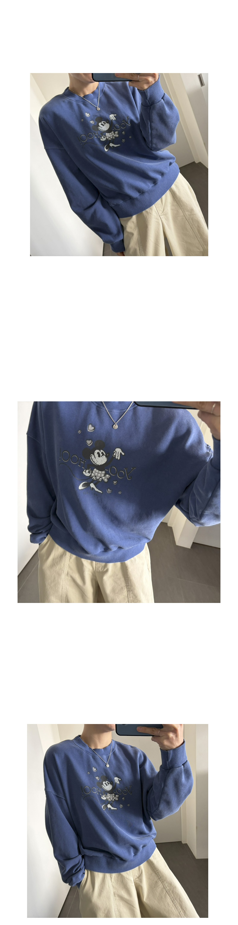 미키 프린팅 맨투맨이 살짝 박시한 느낌들이 많았는데